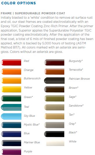 The manufacturer is Superior Shade, which is rated by the International Organization for Standardization (ISO) as an 9001:2000 registered manufacturing facility. Please keep in mind that canopy shades are your best defense against the sun’s rays and the hot weather. You can trust our shade units to meet the highest standards and offer the highest levels of protection.